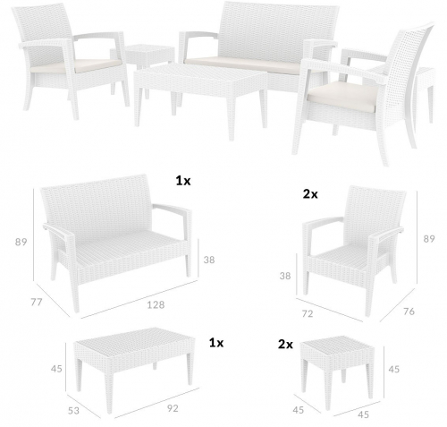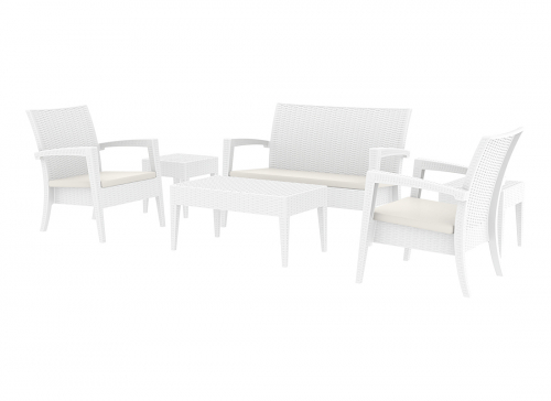 Комплект пластиковой плетеной мебели Miami Lounge изготовлен из прочного погодостойкого пластика, армированного стекловолокном.