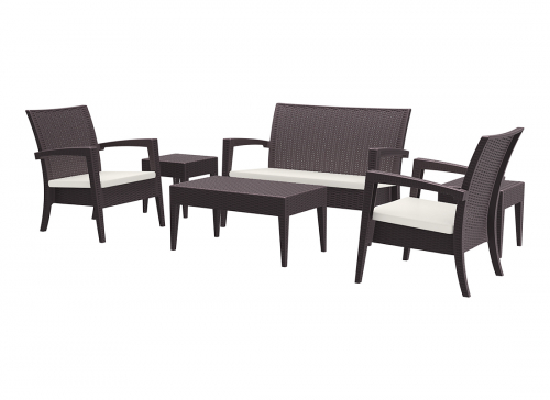 Комплект пластиковой плетеной мебели Miami Lounge с имитацией плетения натурального ротанга станет отличным выбором для обстановки лаунж-зоны в любом заведении. Благодаря использованию высококачественных материалов он долгое время не теряет своего привлекательного внешнего вида, даже несмотря на активную эксплуатацию. Благодаря отсутствию металлического каркаса и устойчивости к ультрафиолетовому воздействию комплект плетеной мебели из пластика Miami Lounge можно использовать в том числе и на открытых площадках.