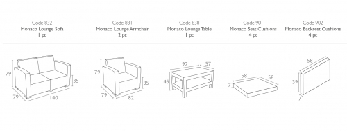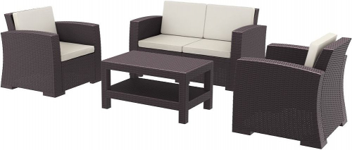 Комплект пластиковой плетеной мебели Monaco Lounge изготовлен из прочного погодостойкого пластика, армированного стекловолокном.