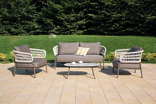 Элегантный и изысканный комплект лаунж-мебели Bled станет отличным выбор для создания островка отдыха на открытом воздухе. Гладкие линии и мягкие подушки дополняются уникальным узором плетения. Весь набор изготовлен со вкусом, в универсальных и притягательных цветах, которые отлично впишутся в любые стили пространств. Устойчивые и надежные материалы изготовления позволяют использовать мебель на защищенных открытых площадках.
