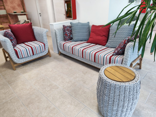 Коллекция Zante сочетает в себе естественную красоту цельного тика с мастерством плетения из инновационных канатов, подходящих для использования на открытом воздухе. Изысканный дизайн сочетается с удобством сидений и вниманием к деталям. Комплект лаунж мебели включает в себя два столика-контейнера разной высоты и диван с креслом. Он рассчитан на комфортное размещение 4-х человек и разработан для создания престижных лаунж зон в отелях, ресторанах и любых других пространствах на свежем воздухе.