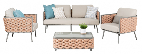 Комплект лаунж мебели Manhattan – это интересное решение для обустройства зон отдыха в отелях, spa-салонах, летних кафе, веранд ресторанов и любых других мест как на открытом пространстве, так и в помещении. Яркой изюминкой является специальное плетение ручной работы из высококачественных материалов. Набор мебели состоит из двухместного дивана, 2 кресел, журнального столика и рассчитан для размещения четырех персон. Изделия с современным и минималистичным дизайном, а также гарантированным комфортом сохраняют теплоту и классицизм, характерный для плетенной мебели.