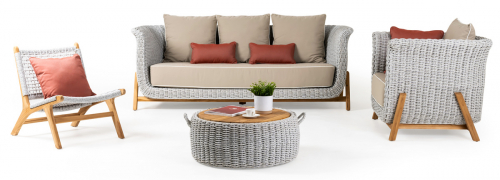 Коллекция Zante сочетает в себе естественную красоту цельного тика с мастерством плетения из инновационных канатов, подходящих для использования на открытом воздухе. Изысканный дизайн сочетается с удобством сидений и вниманием к деталям. Комплект лаунж мебели включает в себя лаунж-кресло, столик-контейнер, диван и кресло с подлокотниками. Он рассчитан на комфортное размещение 4-х человек и разработан для создания престижных лаунж зон в отелях, ресторанах и любых других пространствах на свежем воздухе.