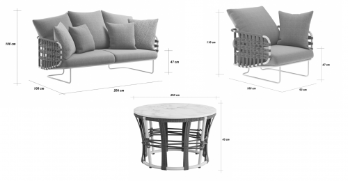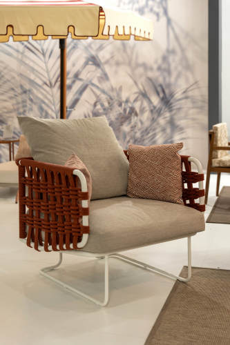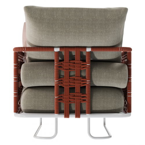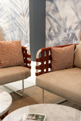 Коллекция Nido с ее насыщенными тонами встречает гостей беспрецедентной универсальностью: она идеально подходит как для светских мероприятий, так и для приватного отдыха. Баланс форм и объемов адаптируется ко всем различным пространствам, от домашних террас до элегантных и изысканных открытых площадок отелей и крупных заведений. Уникальная переплетающаяся веревочная система, являющаяся легким мотивом всей коллекции, обеспечивает крепкую плетеную спинку диванов и кресел. Мягкие подушки, чередующиеся однотонными цветами с геометрическими узорами, создают удобные поверхности для сидения. Металлические конструкции переплетаются с тканевыми веревками, создавая расслабляющее гнездышко на открытом воздухе. Ансамбль необходимых и тщательно продуманных форм, которые придают любому открытому пространству ощущение гостеприимства и уюта.