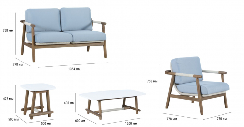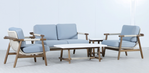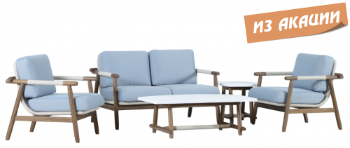 Apoyo - это стильная коллекция уличной мебели из массива АКАЦИИ, в которой сочетаются натуральное верёвочное (роуп) плетение, тёплая текстура дерева и комфортные подушки. Комплект для отдыха состоит из двухместного дивана, двух комфортных кресел и двух журнальных столиков. Превосходное решение для террасы или веранды, подходящее для тех, кто ценит долговечность и эстетический вид уличной мебели