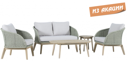 Madrague - это элегантная коллекция уличной мебели из АКАЦИИ, выполненная в комбинации веревочного плетения роуп, акации и комплектом устойчивых к погоде подушек. Комплект для отдыха состоит из двухместного дивана, двух комфортных кресел и двух журнальных столиков. Идеальна для террасы, веранды или комфортной зоны на открытом воздухе - сочетает эстетичный внешний вид, прочность и простой уход.