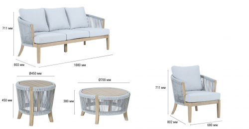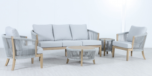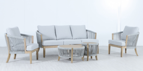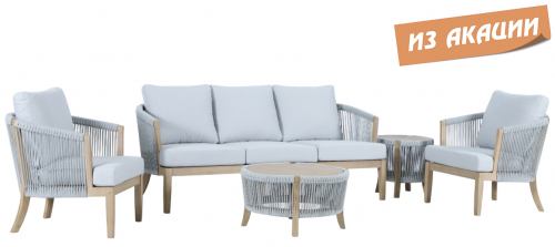 Коллекция Veneto - это линия уличной мебели из АКАЦИИ, объединяющая естественную теплоту дерева и стильные акценты из веревочного плетения роуп. Комплект для отдыха состоит из трехместного дивана, двух комфортных кресел и двух журнальных столиков. Veneto создаёт цельную атмосферу на террасе, веранде или в зоне у бассейна. Концепция коллекции - эстетика природных материалов, продуманная эргономика и долговечность в условиях открытого воздуха.