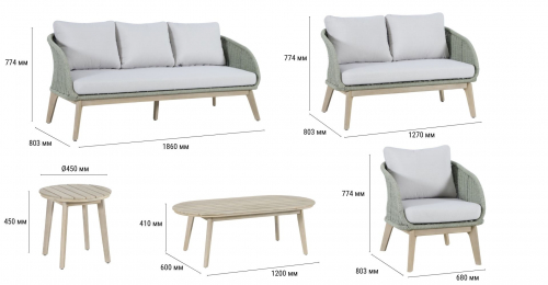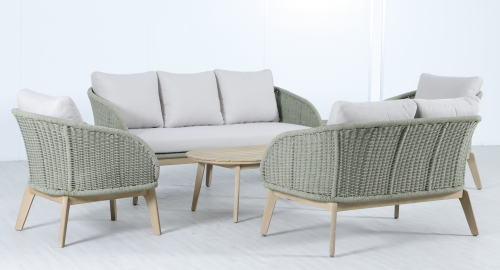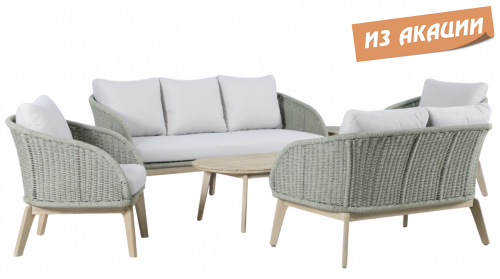 Madrague - это элегантная коллекция уличной мебели из АКАЦИИ, выполненная в комбинации веревочного плетения роуп, акации и комплектом устойчивых к погоде подушек. Комплект для отдыха состоит из двухместного и трехместного диванов, двух комфортных кресел, двух журнальных столиков. Идеальна для террасы, веранды или комфортной зоны на открытом воздухе - сочетает эстетичный внешний вид, прочность и простой уход.