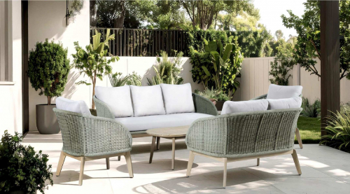 - Подушки в комплекте, ткань подушек - олефин, наполнитель - толстый поролон. Материалы устойчивы к УФ-излучению и другим погодным воздействиям.