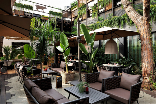 Тонкие линии и геометрические очертания придают конкретную форму смелому характеру этого комплекта. Изысканные качества Nizza воплощены в элегантности черного каркаса и теплых коричневых оттенках плетения и подушек.
