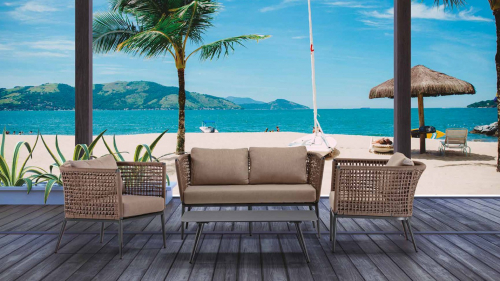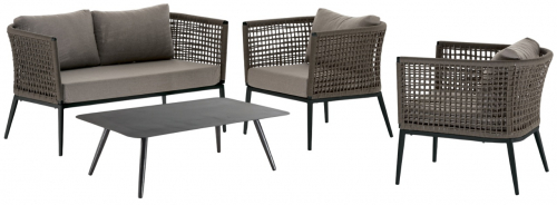 Комплект Cuba состоит из двухместного дивана, двух кресел и журнального столика, каркас которых выполнен из алюминия с порошковым покрытием. Кресла и диван имеют низкую спинку, которая создает одно целое с подлокотниками благодаря канатному плетению из полиэстера Ø6 мм. Объемные и мягкие подушки, созданные для максимизации комфорта, выполнены из олефина, устойчивого к пятнам и ультрафиолетовому излучению. Коллекция Cuba идеально подходит для тех, кто хочет произвести впечатление с помощью дизайнерской мебели в интерьере и на открытых площадках.