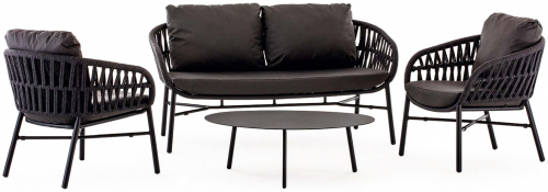 Tahiti - это современный садовый комплект, который создает открытую зону отдыха, подходящую для четырех человек, состоящий из двухместного дивана, двух кресел и журнального столика. Мебель имеет алюминиевый каркас с порошковым покрытием. Диван и кресла дополняются переплетением из каната из полиэстера толщиной 6 мм и подушками на сиденье и спинке. Чехлы на подушках выполнены из текстилена, устойчивого к воздействию ультрафиолетовых лучей и плесени. Журнальный столик Island Big выполнен из алюминия. Столешница - алюминиевый лист толщиной 5 мм.