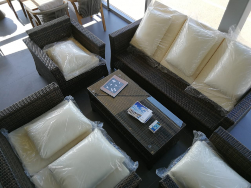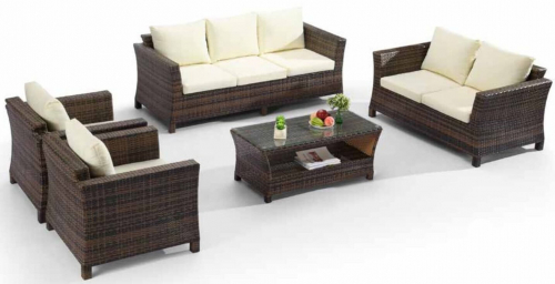 Комплект мебели Fantasy не оставит равнодушным никого. Сочетание коричневого плетения ротанга и бежевых подушек придает этой мебели экзотический и уютный внешний вид.
