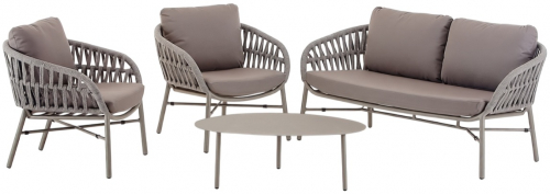 Tahiti - это современный садовый комплект, который создает открытую зону отдыха, подходящую для четырех человек, состоящий из двухместного дивана, двух кресел и журнального столика. Мебель имеет алюминиевый каркас с порошковым покрытием. Диван и кресла дополняются переплетением из каната из полиэстера толщиной 6 мм и подушками на сиденье и спинке. Чехлы на подушках выполнены из текстилена, устойчивого к воздействию ультрафиолетовых лучей и плесени. Журнальный столик Island Big выполнен из алюминия. Столешница - алюминиевый лист толщиной 5 мм.