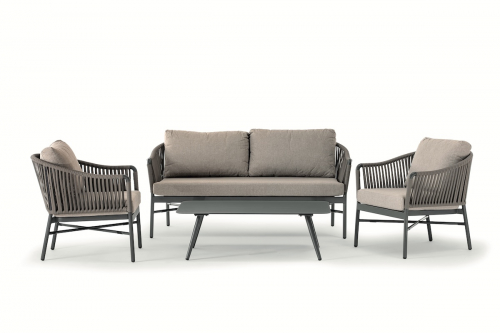 Monaco - это современный садовый комплект, который состоит из двухместного дивана, двух кресел и журнального столика. Алюминиевый каркас с оплеткой из полиолефинового роупа, мягкие подушки со съемными чехлами из олефина, устойчивого к загрязнениям и ультрафиолетовому излучению - всё это создает стильную зону отдыха на открытом пространстве.