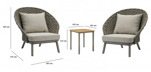 Ультрасовременный дизайн и высококачественные материалы объединяются в комплекте уличной мебели Mallow, создавая идеальную атмосферу для отдыха и развлечений на свежем воздухе. Легкий и прочный алюминиевый каркас, покрытый порошковым материалом, обеспечивает надежную поддержку и устойчивость к внешним воздействиям. Стильная и прочная столешница из тика придает нотку природной элегантности. Подушки на креслах покрыты высококачественной акриловой тканью, которая не только приятна на ощупь, но и устойчива к влаге, ультрафиолету и другим атмосферным воздействиям.