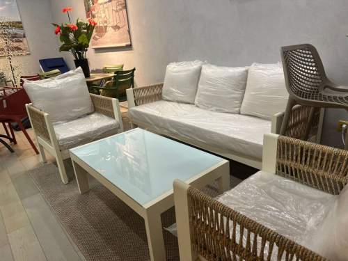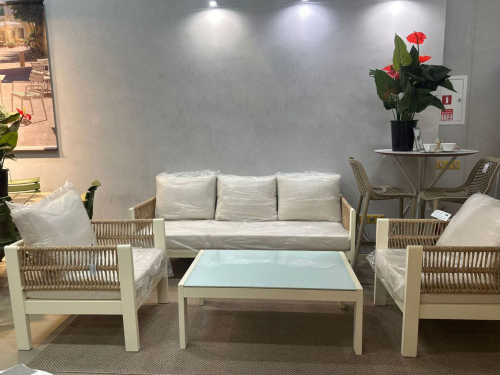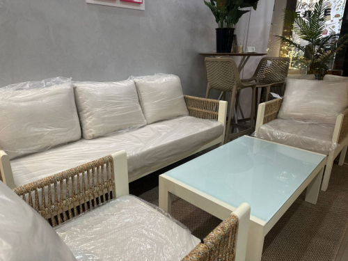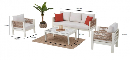 Комплект плетеной лаунж мебели Toscana – это идеальное решение для обустройства зоны отдыха как в сфере Contract, так и в частном проекте. Благодаря стильному внешнему виду и своим характеристикам комплект можно легко использовать в саду, на балконе или террасе. Благодаря алюминиевому каркасу мебель обладает прочностью и надежностью, а за счет плетения из акрила ее можно использовать на открытых пространствах, не боясь потери привлекательного внешнего вида, и с гарантированным сохранением цвета. Подушки на сиденьях дивана и кресел обеспечивают очень комфортную и удобную посадку.