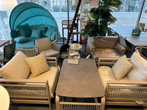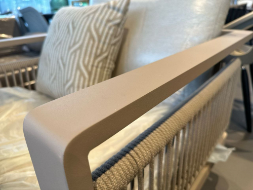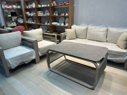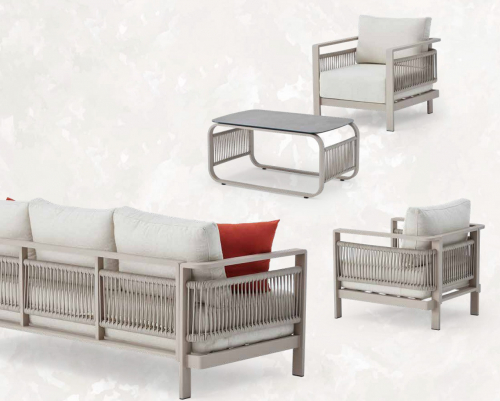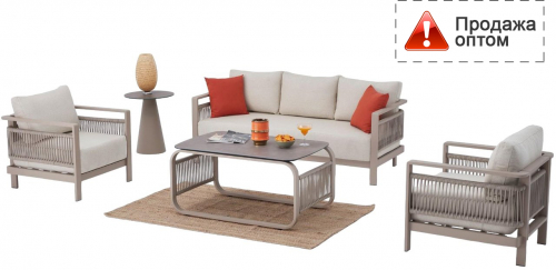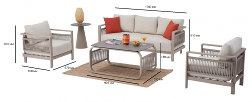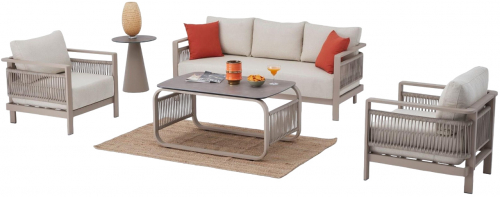 Комплект плетеной лаунж мебели Venedik – это идеальное решение для обустройства зоны отдыха как в сфере Contract, так и в частном проекте. Благодаря стильному внешнему виду и своим характеристикам комплект можно легко использовать в саду, на балконе или террасе. Благодаря алюминиевому каркасу мебель обладает прочностью и надежностью, а за счет плетения из акрила ее можно использовать на открытых пространствах, не боясь потери привлекательного внешнего вида, и с гарантированным сохранением цвета. Подушки на сиденьях дивана и кресел обеспечивают очень комфортную и удобную посадку.