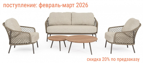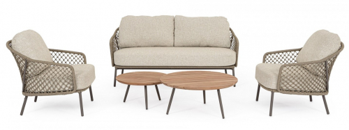 Комплект лаунж мебели Corbeta - это современная комбинация мебели интересной формы и приятного цвета, благодаря которому она оживит любое пространство, в котором находится. Комплект привлекает внимание и станет прекрасным дополнением гостиной зоны на открытом пространстве. Каркас изготовлен из стали и имеет мягкие подушки на сиденье и спинке. Подлокотники и продуманная конструкция гарантируют комфорт во время использования. Плетеный корпус придает дивану и креслам удивительный характер. Ножки обеспечивают хорошую устойчивость.