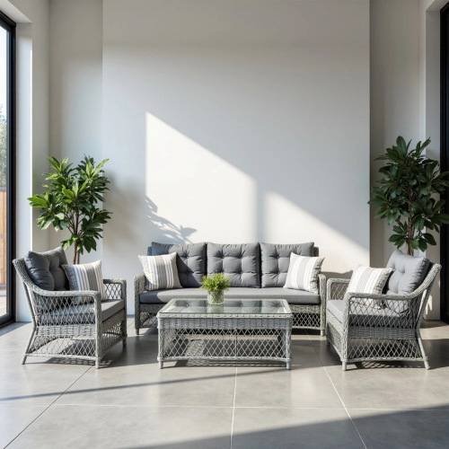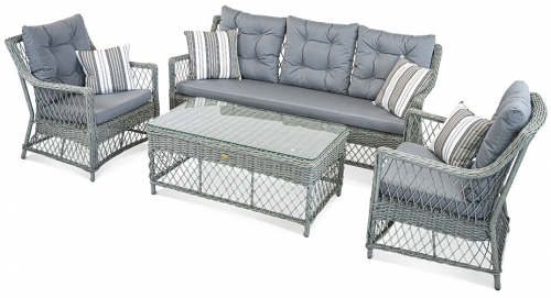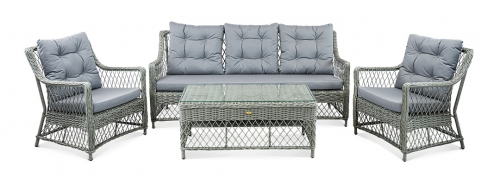 Каждый элемент набора изготовлен из высококачественных материалов, устойчивых к дождю, ультрафиолету и другим капризам погоды, что гарантирует его сохранность и безупречный вид на долгие годы. Мягкие, объемные подушки дивана и кресел дарят непревзойденное ощущение расслабления, приглашая вас насладиться отдыхом в кругу семьи и друзей. Прочный столик является не только стильным акцентом, но и практичным дополнением, всегда находясь под рукой для прохладительных напитков или книг. Комплект Impero - это инвестиция в ваш комфорт и эстетику пространства, где каждая деталь продумана для того, чтобы вы могли наслаждаться жизнью на свежем воздухе без лишних хлопот.