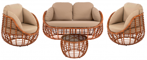 Цена на сайте указана за комплект с плетением в цвете Африканский закат и обивкой подушек из ткани Jamaica Сappucino. Для уточнения всех возможных вариантов материала и цвета данного изделия обращайтесь к нашим менеджерам.