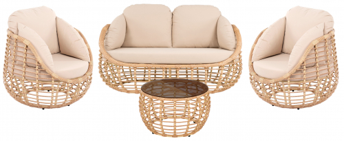 Цена на сайте указана за комплект с плетением в цвете Индийское дерево и обивкой подушек из ткани Jamaica Beige. Для уточнения всех возможных вариантов материала и цвета данного изделия обращайтесь к нашим менеджерам.