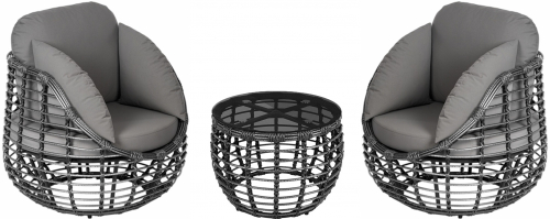 Цена на сайте указана за комплект с плетением в цвете Черный металлик и обивкой подушек из ткани Jamaica Grey. Для уточнения всех возможных вариантов материала и цвета данного изделия обращайтесь к нашим менеджерам.
