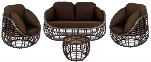 Цена на сайте указана за комплект с плетением в цвете Шоколад металлик и обивкой подушек из ткани Jamaica Brown. Для уточнения всех возможных вариантов материала и цвета данного изделия обращайтесь к нашим менеджерам.