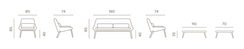 Комплект Como - это двухместный диван, два кресла и низкий столик из алюминия. Плетение дивана и кресел выполнено из искусственного ротанга. Подушки на сиденьях и спинках выполнены из олефина - материала, устойчивого к пятнам и ультрафиолетовому излучению. Такой комплект будет уместен как в частных зонах отдыха, так и на террасах отелей, кафе и баров.