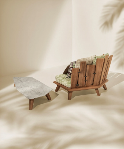 Изящное ремесленное оформление тика сочетается с утонченным диапазоном текстильных расцветок, разработанных Paola Navone. Дизайн, материалы и отделка таким образом создают обстановку с эклектичной душой. Прочные, гостеприимные изделия с уютными объемами, которые воплощают цвет и энергию.