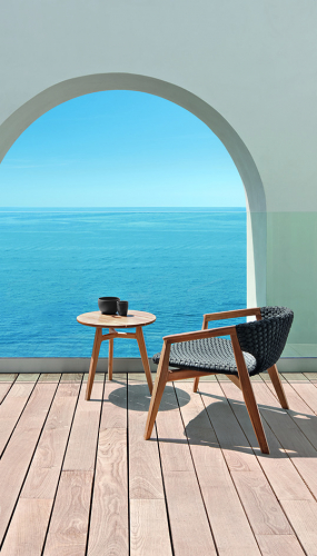 Knit, созданная в 2014 году и расширенная в 2015 году, является звездной коллекцией в широком ассортименте от Ethimo. Полная линейка столов и стульев, изготовленная из тика и искусственного синтетического волокна, отличается изысканностью, для идеального синтеза эстетики, функциональности и эргономики.