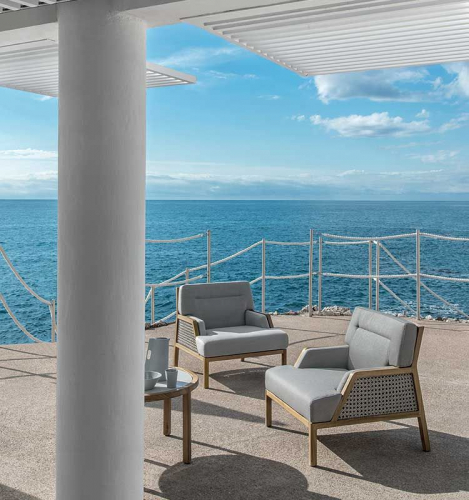 Тепло и элегантность тика и легкого плетеного волокна создают необычайно эргономичную и удобную мебель, выражая более спокойный образ жизни и более утонченный распорядок дня.