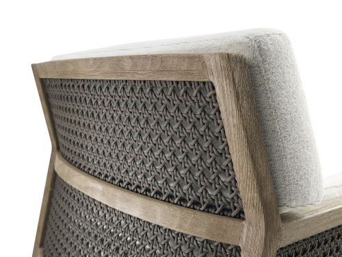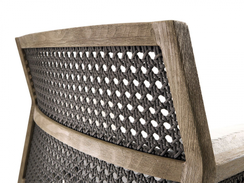 Цена на сайте указана за модель, выполненную из мореного тика (Pickled Teak), с плетением цвета тортора (Taupe Round Rope) и подушками из акрила белого цвета (Acrylic Nature White).