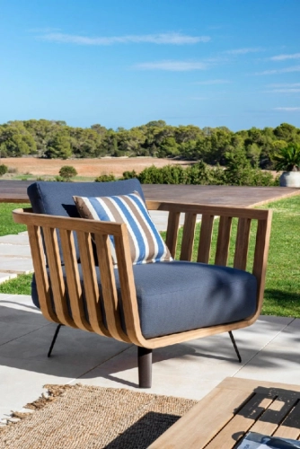 В модульной коллекции Welcome тиковые планки были изогнуты паром с использованием старинной техники ручной работы. Все подушки из коллекции Welcome доступны в более чем 30 различных цветах, что позволяет создать персональную атмосферу на открытом пространстве.
