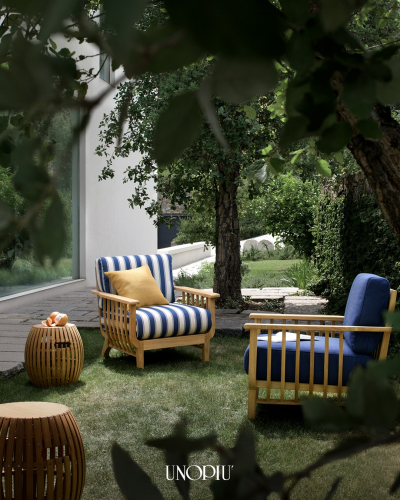 Тиковое дерево - это превосходный материал, известный во всем мире красотой текстуры поверхности и превосходными физическими характеристиками. Это прочная, водостойкая древесина, устойчивая к соленым средам и разным погодным условиям. Для производства мебели Unopiù использует только самый доступный и прочный тик из индонезийских лесов, и только тот, который обладает высочайшим качеством - из центра ствола. Качество и экологическая устойчивость: тик Unopiù поступает только с сертифицированных, гарантированных и контролируемых государственных плантаций, где каждый спил дерева заменяется новым.
