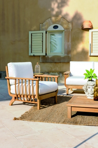 Chelsea - это коллекция из тикового дерева, которая выделяется своей компактностью, вниманием к деталям и естественной элегантностью, а также оригинальностью дизайна. Восточное вдохновение характеризует дизайн коллекции, в которой продуманная низкая посадка уравновешивается толстыми подушками. Выбирая из более чем 30 комбинаций тканей и цветов из коллекции Unopiu Color Collection, можно создать полностью личное пространство.