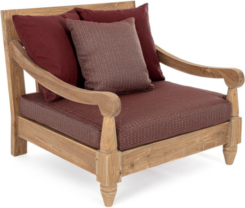 Уличное кресло Bali выполнено из тика, поэтому отличается устойчивостью и долговечностью. Сиденье и подушки - из солнцезащитной олефиновой ткани. Стильное кресло Bali идеально подходит для обстановки лаунж зоны в саду или на террасе загородного дома.