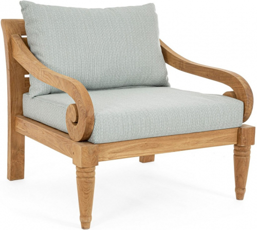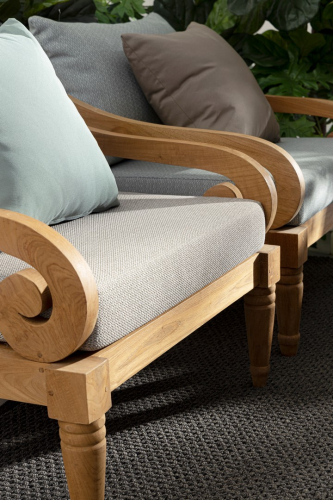 Уличное кресло Karuba выполнено из тика, поэтому отличается устойчивостью и долговечностью. Сиденье и подушки - из солнцезащитной олефиновой ткани. Стильное кресло Karuba идеально подходит для обстановки лаунж зоны в саду или на террасе загородного дома.