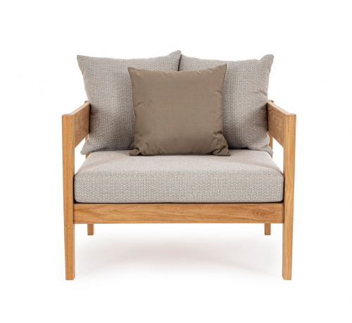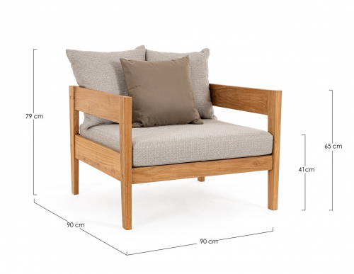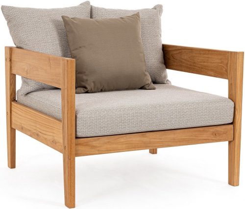 Уличное кресло Kobo выполнено из тика, поэтому отличается устойчивостью и долговечностью. Сиденье и подушки - из солнцезащитной олефиновой ткани. Стильное кресло Kobo идеально подходит для обстановки лаунж зоны в саду или на террасе загородного дома.