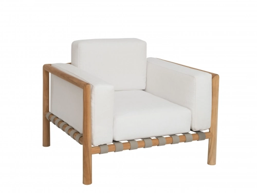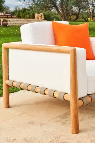 Вся мебель коллекции, от диванов, кресел и столиков для гостиной до обеденных кресел и столов, а также шезлонгов и лаунж-диванов, характеризуется обработкой тика мягкими, округлыми и изящными линиями. Эти линии не только радуют глаз, но и гарантируют максимальный комфорт. Геометрические рамы и вдохновленное Востоком плетение из ремней, выполненное вручную, подчеркивают культуру искусной обработки, присущую Unopiù.