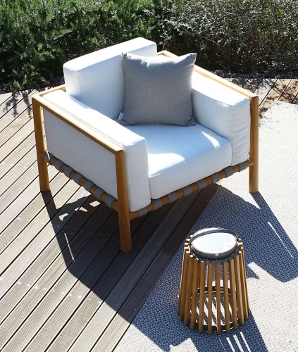 Каркас мебели выполнен из тика - превосходного материала, известного во всем мире красотой текстуры поверхности и превосходными физическими характеристиками. Это прочная, водостойкая древесина, устойчивая к соленым средам и разным погодным условиям. Для производства мебели Unopiù использует только самый доступный и прочный тик из индонезийских лесов, и только тот, который обладает высочайшим качеством - из центра ствола. Качество и экологическая устойчивость: тик Unopiù поступает только с сертифицированных, гарантированных и контролируемых государственных плантаций, где каждый спил дерева заменяется новым.