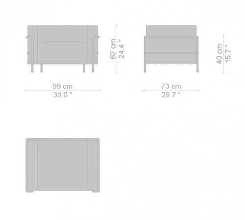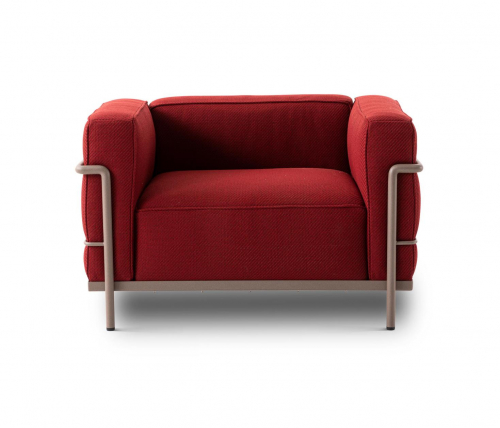 Кресло LC3 обозначило отделение металлического каркаса от обивки, отражая теорию модернистской архитектуры, в которой несущая конструкция здания была отделена от остальной части. В этом случае четыре отдельных подушки устанавливаются внутри клетки из окрашенных стальных труб. То же самое используется для всех остальных предметов коллекции, от кресла - до двух- или трехместных диванов. На протяжении многих лет Cassina тесно сотрудничала с дизайнерами Charlotte Perriand и Le Corbusier, переосмысливая оригинальный дизайн, соблюдая его первоначальные замыслы, чтобы вывести на рынок новые версии и отделки этой мебели. Вариант LC3 Outdoor имеет каркас из нержавеющей стали и окрашен специальной текстурированной краской, доступной в пяти цветах. Подушки покрыты водоотталкивающим материалом, что обеспечивает максимальную долговечность и надежность в любую погоду.