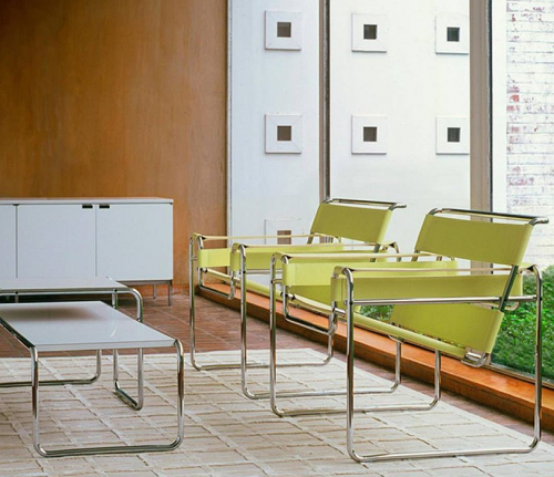 Кресло Wassily, спроектированное Марселем Брёйером в Баухаусе в 1925 году, знаменует собой начало современного дизайна мебели. Трубчатая стальная рама сложной формы сочетается с кожаным покрытием, образующим сиденье и спинку. Конструктивистский дизайн Брёйера радикально раскрывает свою статику и, таким образом, сочетает в себе эстетику и функциональность уникальным инновационным способом.