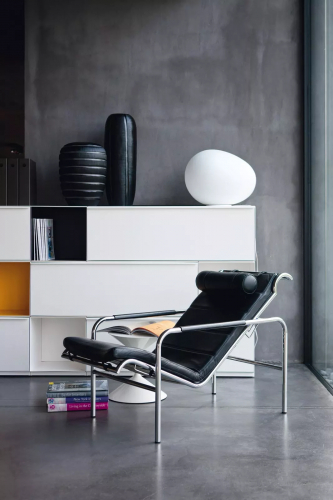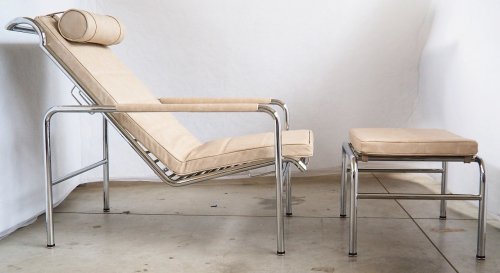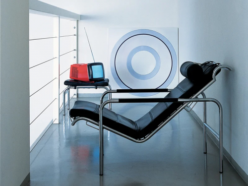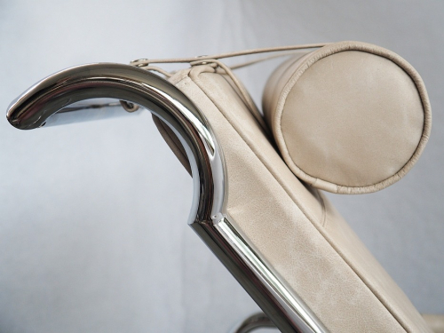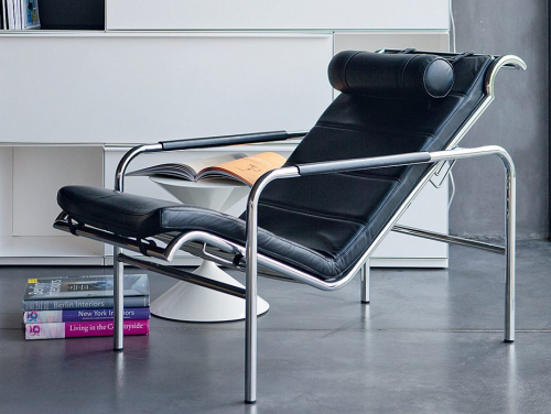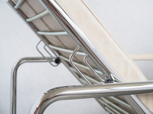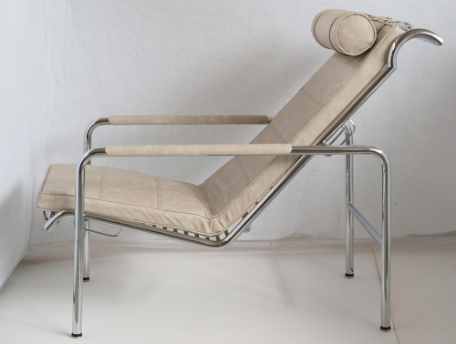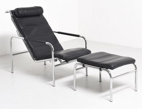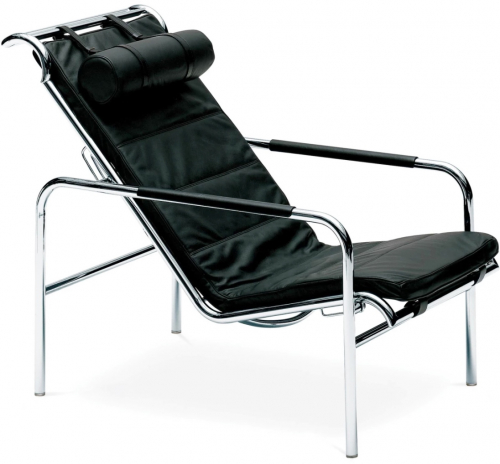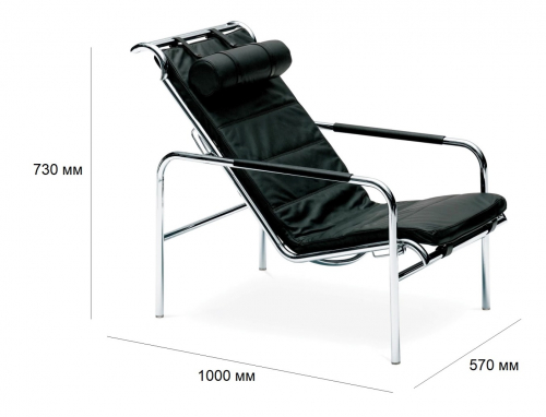 Регулируемое в двух направлениях кресло со стальными пружинами было разработано в 1935 году. Это впечатляющее кресло для отдыха выполнено в уникальном стиле из трубчатого хромированного металла, изогнутого в прямоугольную форму с закругленными углами. Его стиль Баухаус действительно привлекает внимание и прекрасно дополняется черной кожаной обивкой сиденья, спинки, подголовника и подлокотников. Сочетание материалов приятно контрастирует и очень хорошо подходит изделию! Кресло идеально сочетает в себе модернизм и элегантность, действительно привлекательный предмет, готовый дополнить любой интерьер, который ищет что-то особенное!