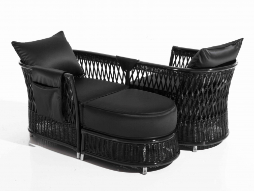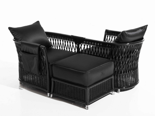 Мебель Vega вдохновлена игрой плетений. Плетение из натурального ротанга, плотное и компактное в нижней части структуры, расширяется по мере продвижения вверх, создавая ромбовидный узор. Окончательный эффект производит впечатление легкости и солидности. Структура и тканые секции полностью выполнены из ротанга и лозы и созданы вручную с тщательным вниманием к деталям. Эти натуральные материалы украшены мельчайшими деталями, такими как золотые ножки и ручки, а также элегантными тканями и карманами для хранения, которые украшают структуру и придают изделиям величественный вид. Чтобы сохранить долговечность натуральных материалов, из которых изготовлена мебель из этого ассортимента, как и все элементы коллекции Orangerie, их следует использовать в местах, защищенных от дождя и прямых солнечных лучей. Элементы линейки Vega можно использовать на верандах или в зимних садах, а также в оздоровительных центрах и спа, поскольку они устойчивы к влажности.