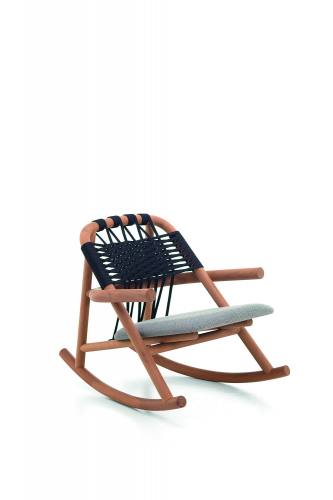 Кресло-качалка Unam имеет деревянный каркас, мягкое сиденье, плетеную спинку и может похвастаться чистыми линиями, а также аутентичными материалами изготовления. Основанное на традиционной эстетике и методах производства, в кресле повторяется классическая техника плетения. Его основная конструкция состоит из простых деревянных элементов, которые придают креслу устойчивость и определяют его пропорции. Сочетание материалов и форм создает ощущение защищенности и безопасности.