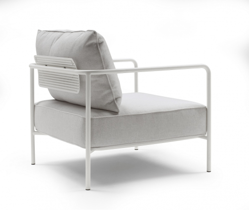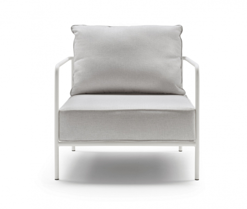 Flap – это коллекция модульной мягкой мебели, в которой элементы объединены по композиции с опорными поверхностями. Отличительной частью конструкции являются элементы в спинке, напоминающие по форме закрылки самолета, с функцией поддержки задних подушек и способные поворачиваться вокруг оси примерно на 15 градусов: это позволяет подушке иметь разный наклон для достижения максимально возможной степени комфорта. Модули Flap подходят для различных условий использования как в жилом, так и в контрактном секторах. Обивка подушек предлагается в тщательно подобранных различных текстурах, чтобы гармонично вписаться в классическую или современную обстановку на открытом воздухе. Подушки выполнены из акриловой ткани и предназначены для использования на улице. Дополнением к элементам служит приставной кофейный столик с окрашенной стальной рамой и столешницей из компакт-ламината HPL.