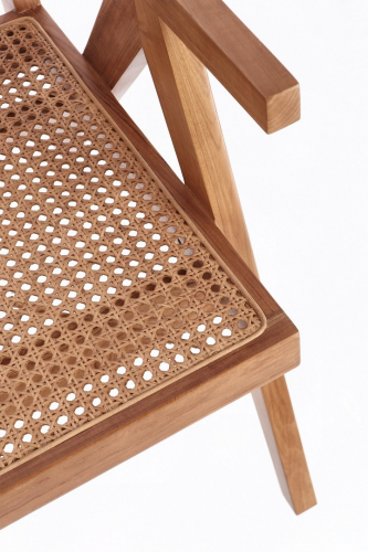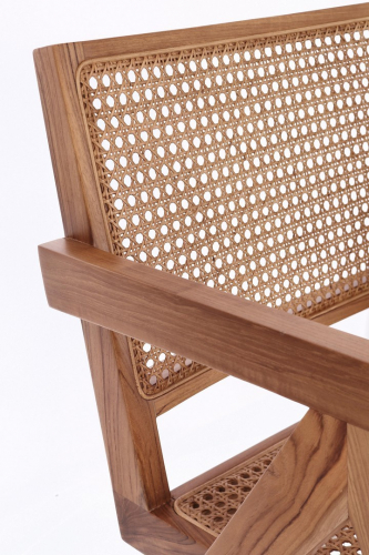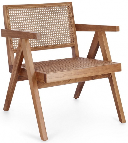 Лаунж кресло Galia прекрасно дополнит обустройство комнаты в стиле бохо. Оно изготовлено из тикового дерева и покрыто натуральной нитроцеллюлозной краской. Спинка и сиденье изготовлены из ротанга. Хорошая форма обеспечит полноценный отдых. Подлокотники являются дополнительным преимуществом, которое обеспечит комфорт пользователю.