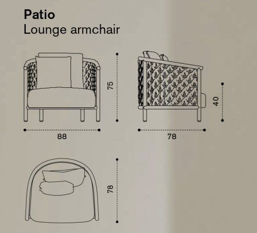 Эта невероятно уютная коллекция, в которой кресла, диваны и гамак напоминают кокон. Увидев любой предмет мебели из Patio сразу возникает желание погрузиться в его "объятия", расслабляясь и согреваясь под солнцем в саду. Все элементы коллекции Patio объединены одной темой: новый взгляд на традиционное ткачество разных культур, с их завораживающими геометрическими узорами и искусным мастерством. На основе их изучения рождаются новые узоры, в то же время структура и декор рождает гостеприимную соблазнительную и изысканную мебель.