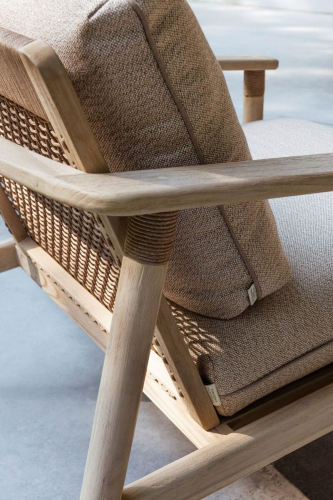 Кресло David из состаренного тика с плетеной спинкой и деталями из веревок идеально подходит для придания изысканности окружающему пространству. Создайте композицию с журнальным столиком David, чтобы получить уютное место для отдыха на открытом воздухе.